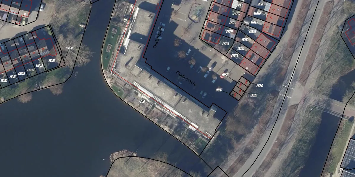 Het perceel waarop Oudiestaete 30 staat heeft een oppervlakte van 2792 m². Dit is een zeer groot perceel. De perceeloppervlakte wordt geregistreerd door het Kadaster. Gedetailleerde informatie over de maten van dit perceel kunt u vinden in het rapport Kadastrale kaart met maatvoering van Oudiestaete 30.