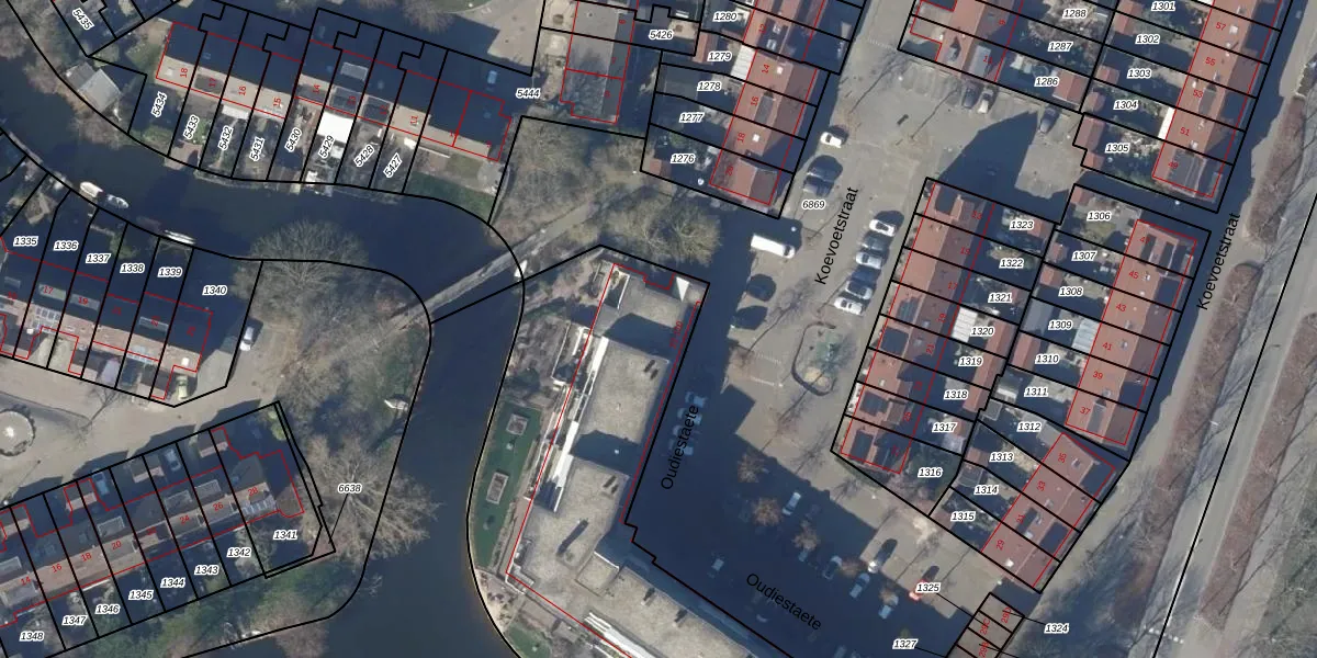 Het perceel waarop Oudiestaete 38 staat heeft een oppervlakte van 2792 m². Dit is een zeer groot perceel. De perceeloppervlakte wordt geregistreerd door het Kadaster. Gedetailleerde informatie over de maten van dit perceel kunt u vinden in het rapport Kadastrale kaart met maatvoering van Oudiestaete 38.