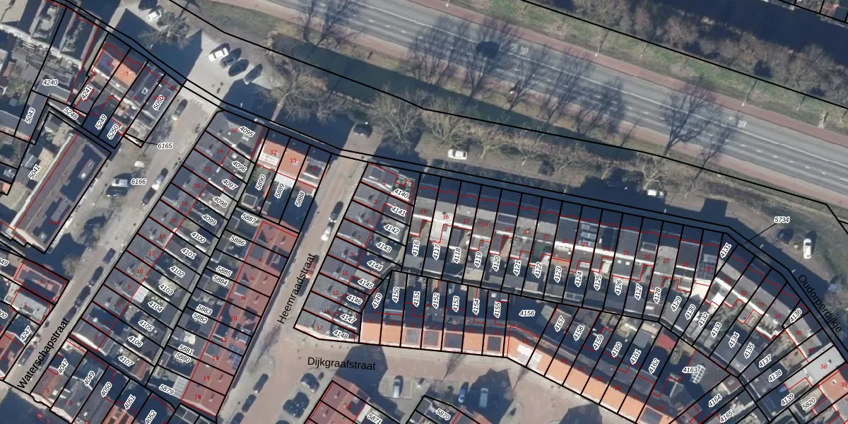 Gebruik de zoekbalk of klik op een perceel voor informatie over de adressen binnen dit perceel.