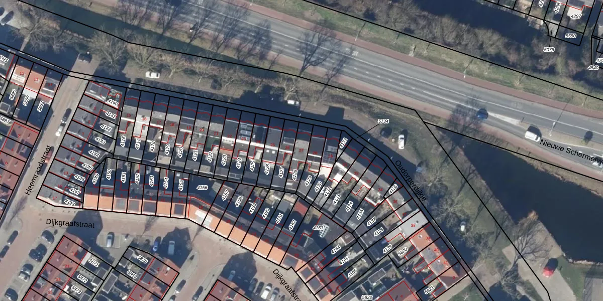 Gebruik de zoekbalk of klik op een perceel voor informatie over de adressen binnen dit perceel.