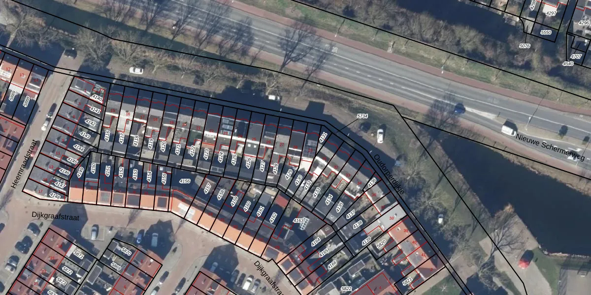 Gebruik de zoekbalk of klik op een perceel voor informatie over de adressen binnen dit perceel.