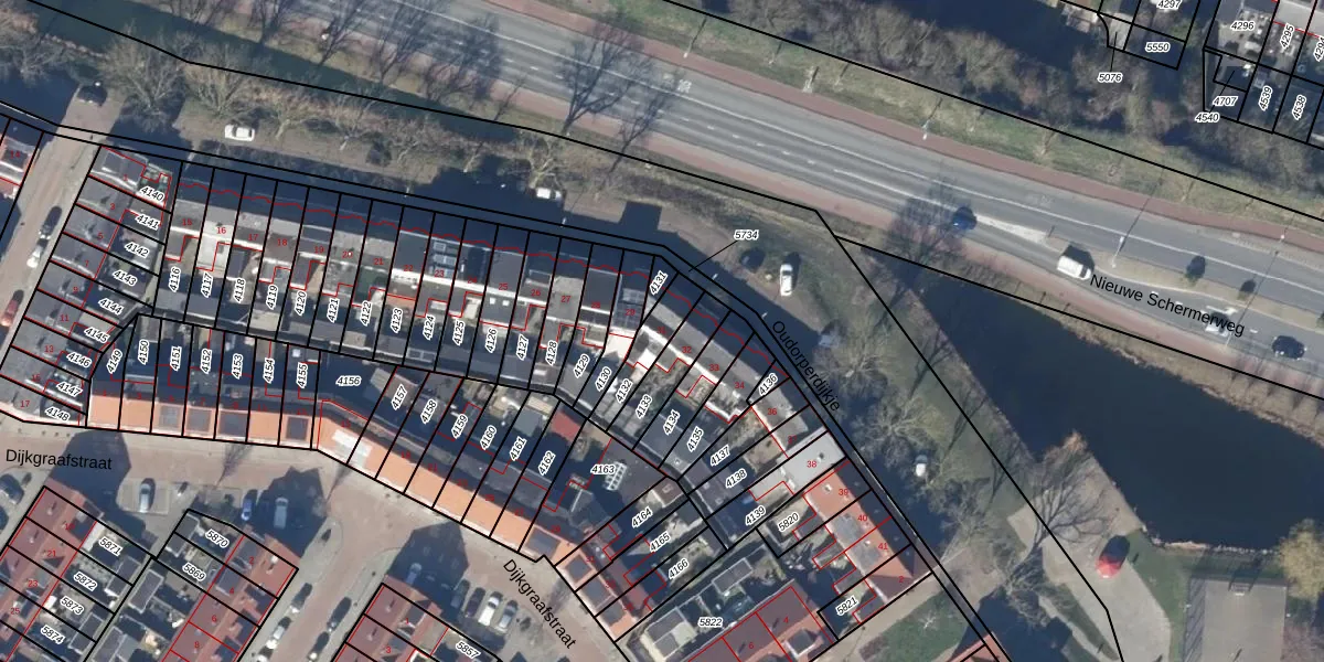 Gebruik de zoekbalk of klik op een perceel voor informatie over de adressen binnen dit perceel.