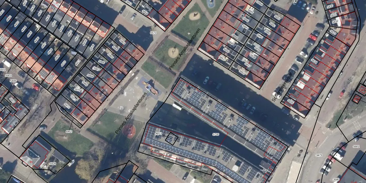 Het perceel waarop het adres ligt is AMR01-B-5730. De afkorting 'AMR01' staat voor kadastrale gemeente Alkmaar. Het perceel is met 2665 m² relatief groot. Het gemiddelde ligt in de kadastrale gemeente Alkmaar op 817,39 m². De grootste perceeloppervlakte in de kadastrale gemeente is 28,3 ha. De kleinste oppervlakte bedraagt 0 m². Er zijn 48 adressen aanwezig op het perceel. In de Basisregistratie Kadaster (BRK) werden de grenzen van het perceel geregistreerd op 01-12-2008.