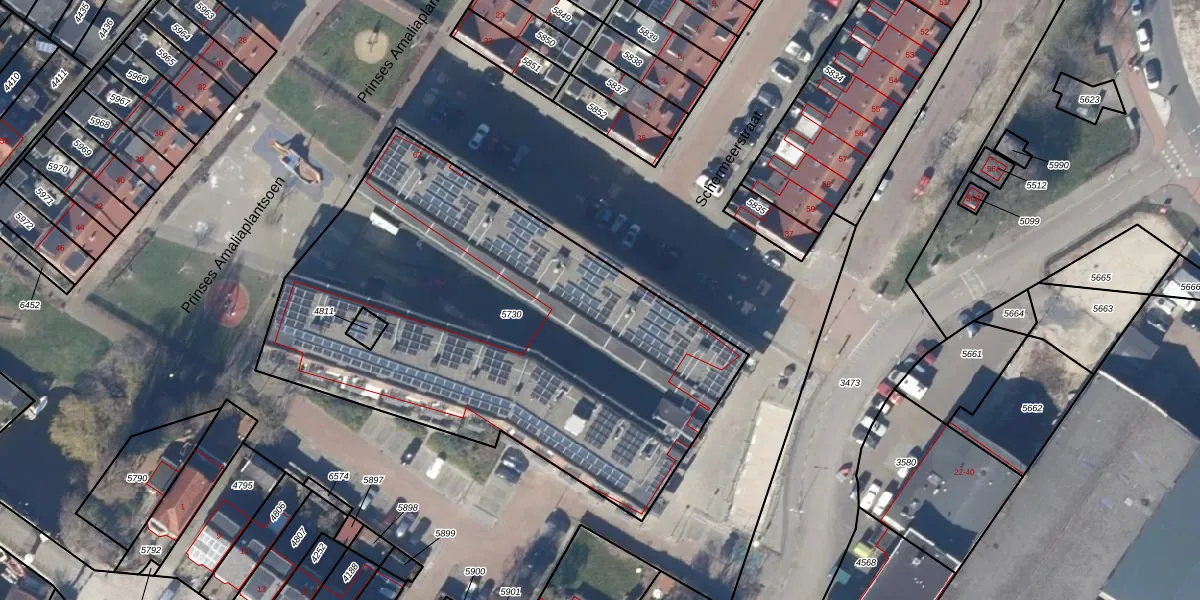 Het perceel waarop het adres ligt is AMR01-B-5730. De afkorting 'AMR01' staat voor kadastrale gemeente Alkmaar. Het perceel is met 2665 m² relatief groot. Het gemiddelde ligt in de kadastrale gemeente Alkmaar op 817,39 m². De grootste perceeloppervlakte in de kadastrale gemeente is 28,3 ha. De kleinste oppervlakte bedraagt 0 m². Op het perceel zijn 48 adressen aanwezig. De laatste wijziging in het de Basisregistratie Kadaster (BRK) was op 01-12-2008.