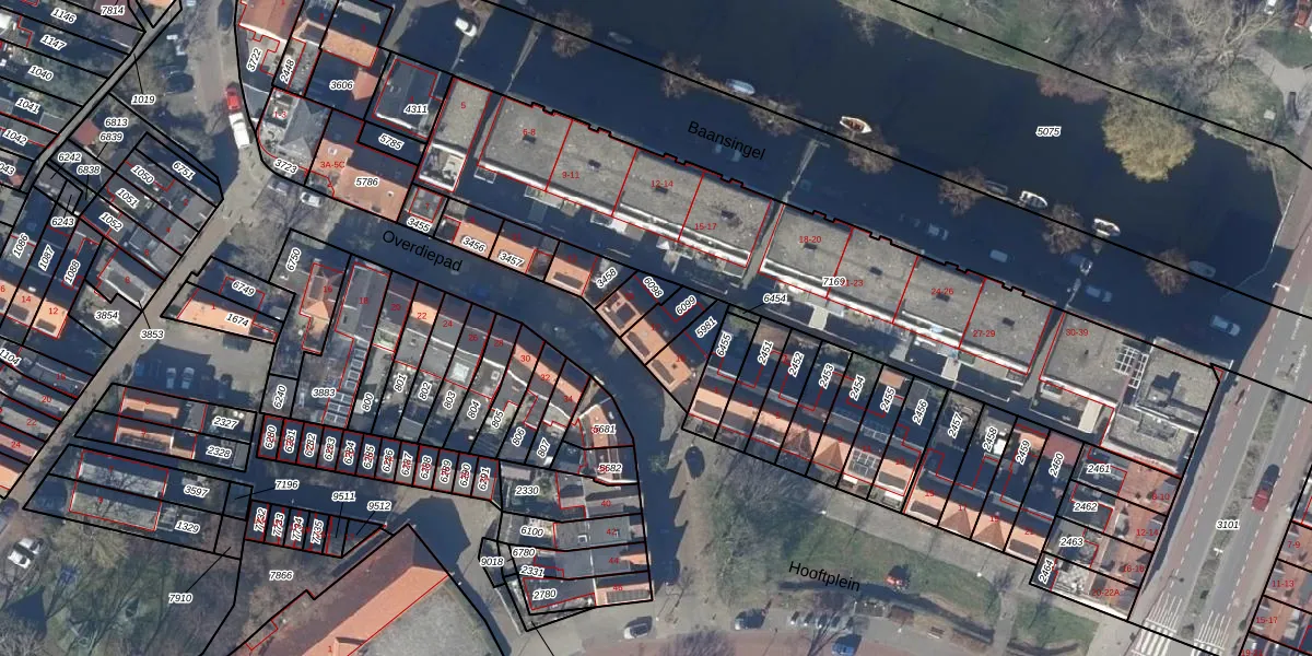 Gebruik de zoekbalk of klik op een perceel voor informatie over de adressen binnen dit perceel.