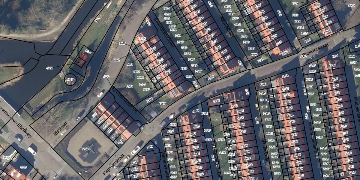Gebruik de zoekbalk of klik op een perceel voor informatie over de adressen binnen dit perceel.