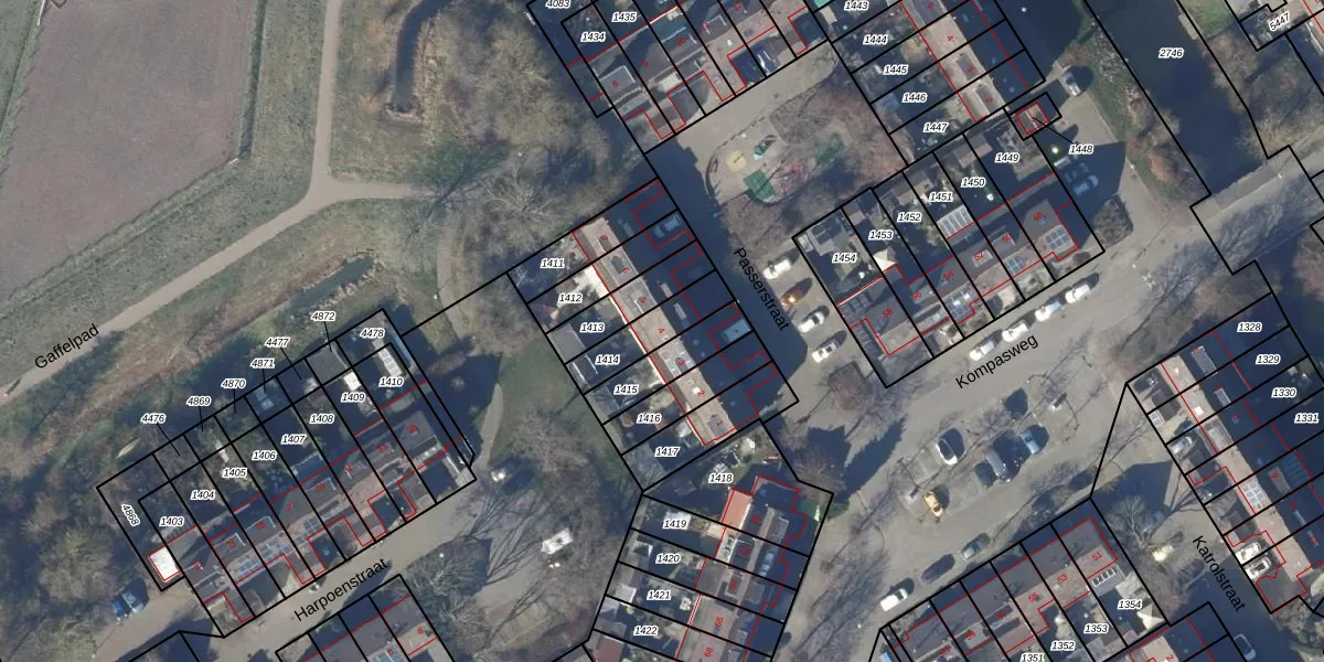 Gebruik de zoekbalk of klik op een perceel voor informatie over de adressen binnen dit perceel.