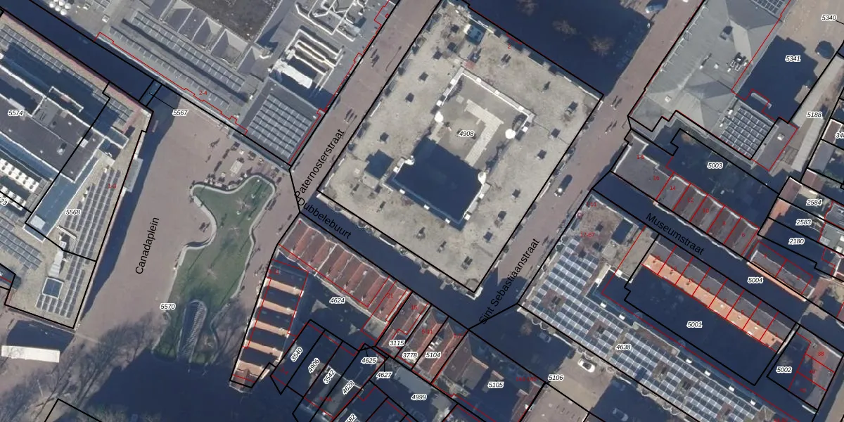 Het perceel waarop Paternosterstraat 135 staat heeft een oppervlakte van 2497 m². Dit is een zeer groot perceel. De perceeloppervlakte wordt geregistreerd door het Kadaster. Gedetailleerde informatie over de maten van dit perceel kunt u vinden in het rapport Kadastrale kaart met maatvoering van Paternosterstraat 135.