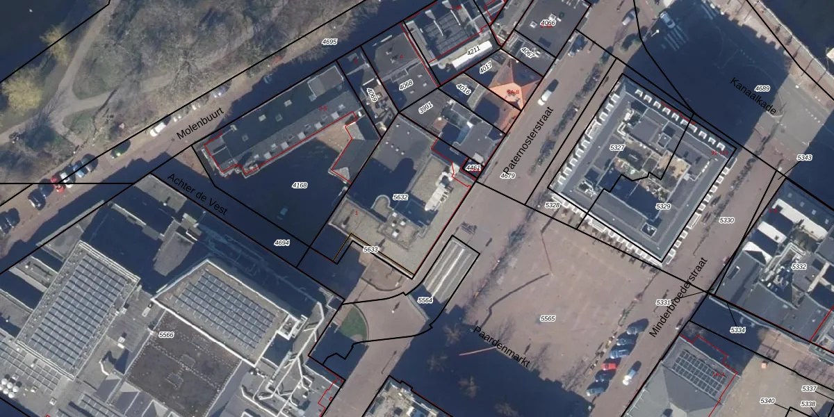 Het perceel waarop Paternosterstraat 26 staat heeft een oppervlakte van 798 m². Dit is een groot perceel. De perceeloppervlakte wordt geregistreerd door het Kadaster. Gedetailleerde informatie over de maten van dit perceel kunt u vinden in het rapport Kadastrale kaart met maatvoering van Paternosterstraat 26.