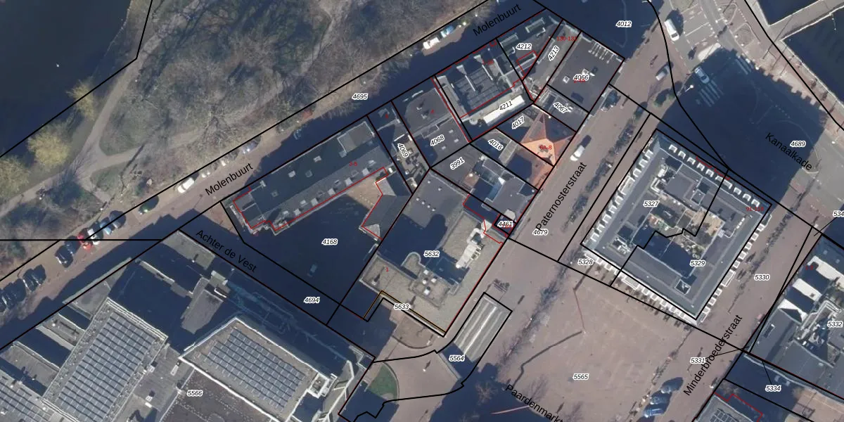 Het perceel waarop Paternosterstraat 66 staat heeft een oppervlakte van 798 m². Dit is een groot perceel. De perceeloppervlakte wordt geregistreerd door het Kadaster. Gedetailleerde informatie over de maten van dit perceel kunt u vinden in het rapport Kadastrale kaart met maatvoering van Paternosterstraat 66.