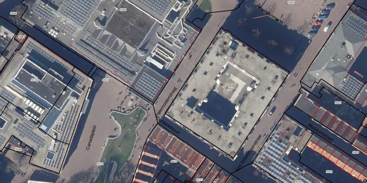 Het perceel waarop Paternosterstraat 81 staat heeft een oppervlakte van 2497 m². Dit is een zeer groot perceel. De perceeloppervlakte wordt geregistreerd door het Kadaster. Gedetailleerde informatie over de maten van dit perceel kunt u vinden in het rapport Kadastrale kaart met maatvoering van Paternosterstraat 81.