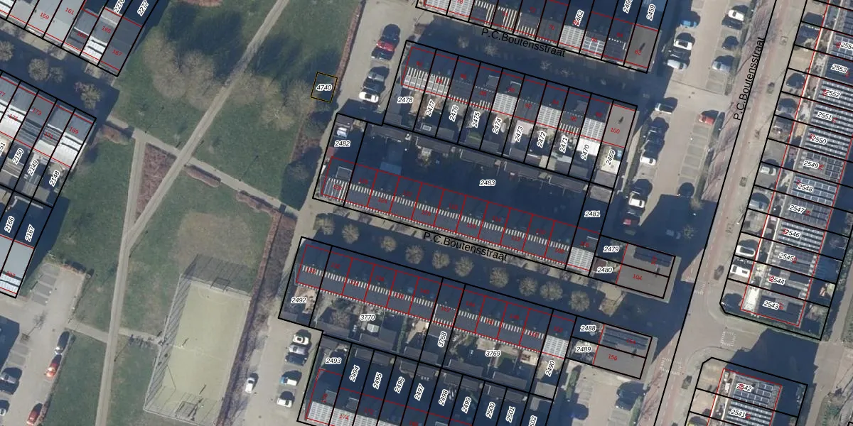 Het perceel waarop P.C.Boutensstraat 120 staat heeft een oppervlakte van 1155 m². Dit is een zeer groot perceel. De perceeloppervlakte wordt geregistreerd door het Kadaster. Gedetailleerde informatie over de maten van dit perceel kunt u vinden in het rapport Kadastrale kaart met maatvoering van P.C.Boutensstraat 120.