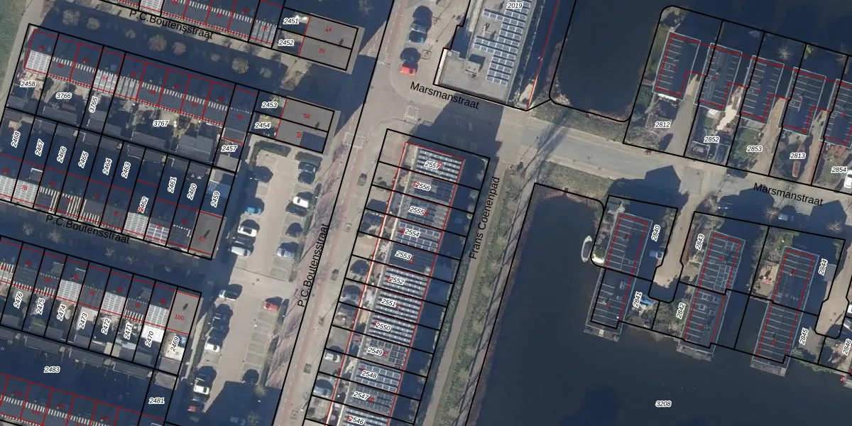 Gebruik de zoekbalk of klik op een perceel voor informatie over de adressen binnen dit perceel.