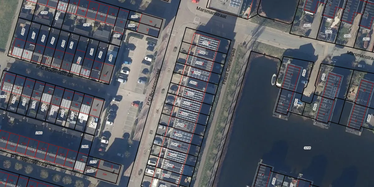 Gebruik de zoekbalk of klik op een perceel voor informatie over de adressen binnen dit perceel.