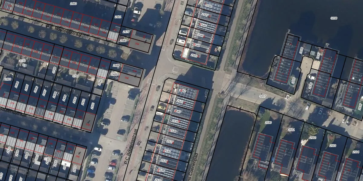 Het perceel waarop P.C.Boutensstraat 89 staat heeft een oppervlakte van 196 m². Dit is een middelgroot perceel. De perceeloppervlakte wordt geregistreerd door het Kadaster. Gedetailleerde informatie over de maten van dit perceel kunt u vinden in het rapport Kadastrale kaart met maatvoering van P.C.Boutensstraat 89.