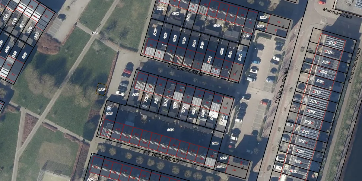 P.C.Boutensstraat 90 is gelegen op kadastraal perceel AMR01L2474. Deze kadastrale aanduiding is uniek en wordt gebruikt door het Kadaster om eigendomsrechten en andere zakelijke rechten vast te leggen. Het perceel maakt onderdeel uit van de kadastrale gemeente Alkmaar.