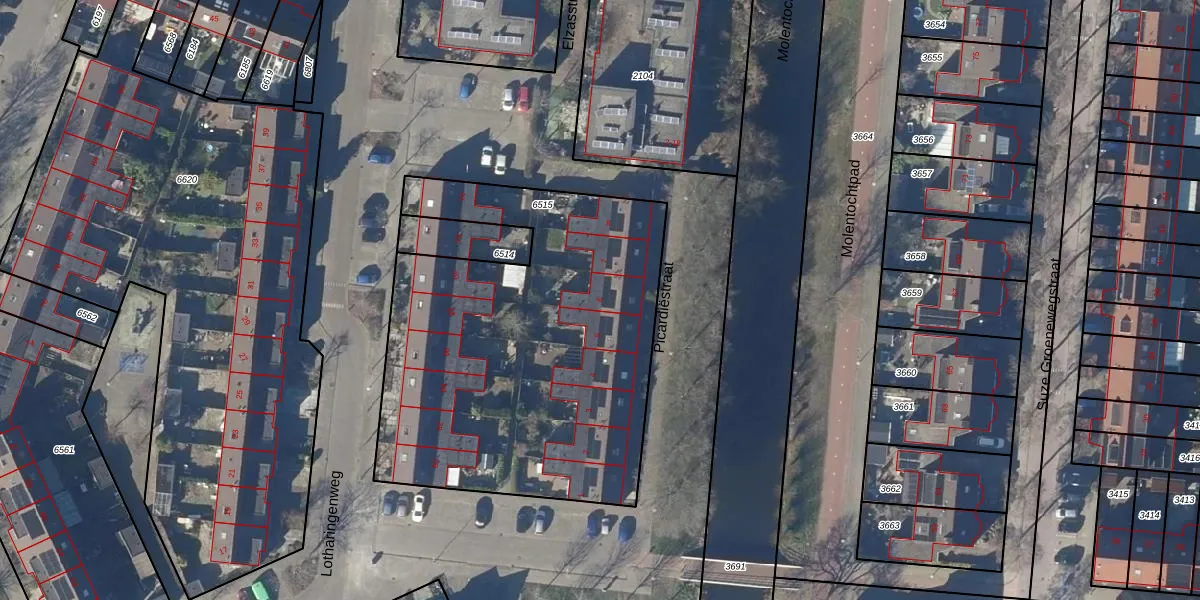 Het perceel waarop Picardiëstraat 6 staat heeft een oppervlakte van 2104 m². Dit is een zeer groot perceel. De perceeloppervlakte wordt geregistreerd door het Kadaster. Gedetailleerde informatie over de maten van dit perceel kunt u vinden in het rapport Kadastrale kaart met maatvoering van Picardiëstraat 6.