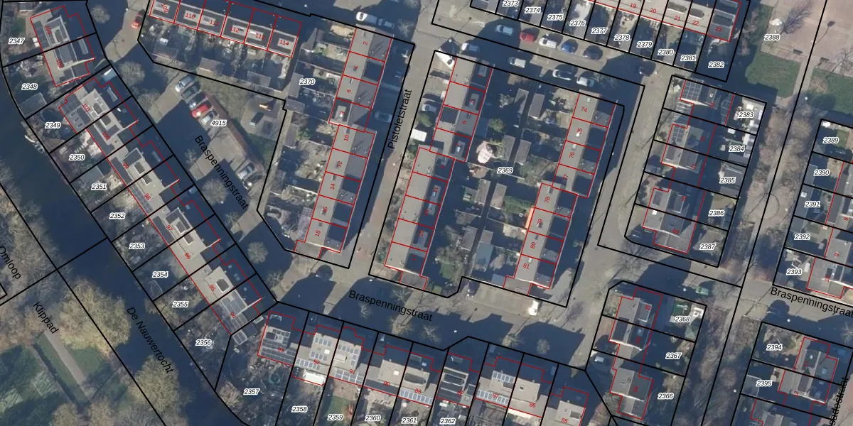 Het perceel waarop Pistoletstraat 13 staat heeft een oppervlakte van 2408 m². Dit is een zeer groot perceel. De perceeloppervlakte wordt geregistreerd door het Kadaster. Gedetailleerde informatie over de maten van dit perceel kunt u vinden in het rapport Kadastrale kaart met maatvoering van Pistoletstraat 13.