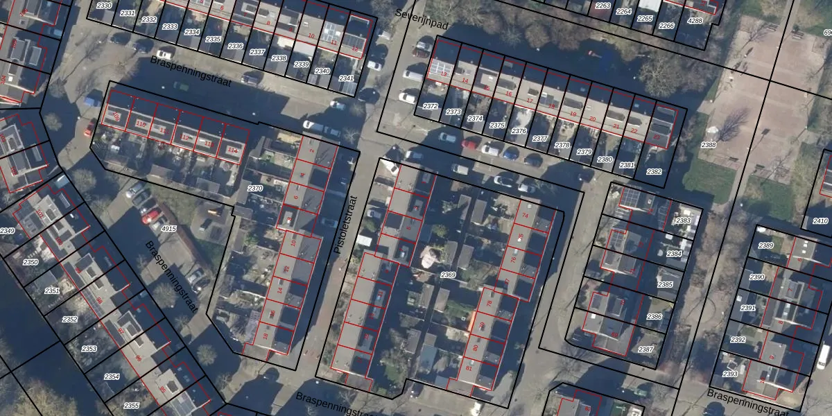 Het perceel waarop Pistoletstraat 3 staat heeft een oppervlakte van 2408 m². Dit is een zeer groot perceel. De perceeloppervlakte wordt geregistreerd door het Kadaster. Gedetailleerde informatie over de maten van dit perceel kunt u vinden in het rapport Kadastrale kaart met maatvoering van Pistoletstraat 3.