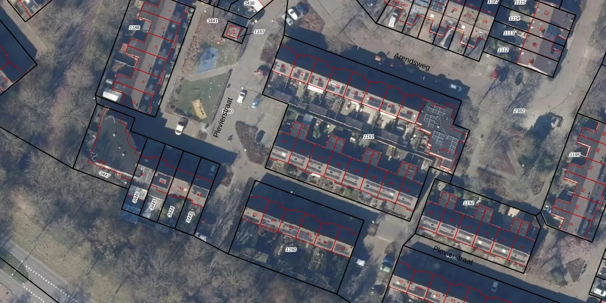 Het perceel waarop Plevierstraat 52 staat heeft een oppervlakte van 2541 m². Dit is een zeer groot perceel. De perceeloppervlakte wordt geregistreerd door het Kadaster. Gedetailleerde informatie over de maten van dit perceel kunt u vinden in het rapport Kadastrale kaart met maatvoering van Plevierstraat 52.