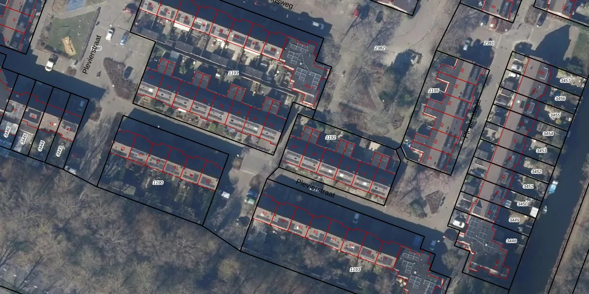 Het perceel waarop Plevierstraat 66 staat heeft een oppervlakte van 735 m². Dit is een groot perceel. De perceeloppervlakte wordt geregistreerd door het Kadaster. Gedetailleerde informatie over de maten van dit perceel kunt u vinden in het rapport Kadastrale kaart met maatvoering van Plevierstraat 66.