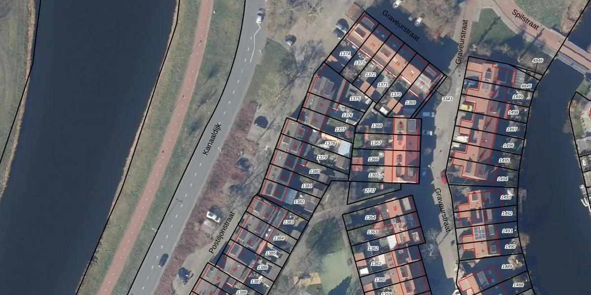 Gebruik de zoekbalk of klik op een perceel voor informatie over de adressen binnen dit perceel.