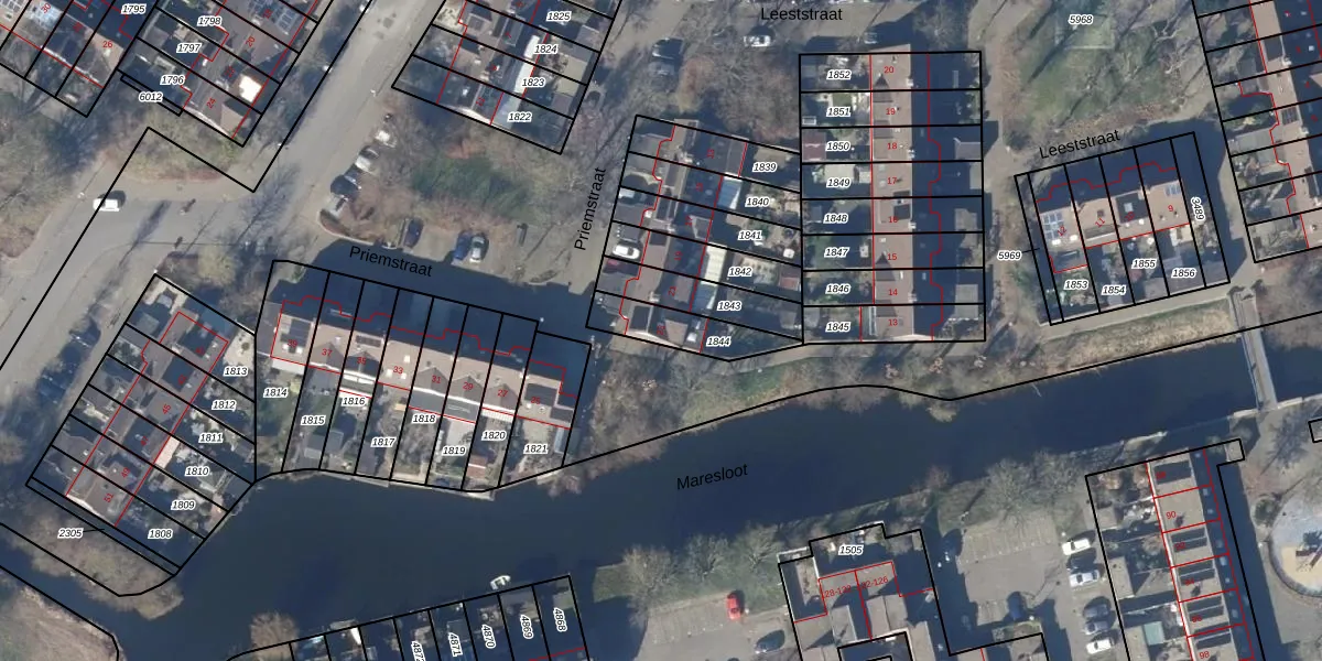 Het perceel waarop Priemstraat 23 staat heeft een oppervlakte van 159 m². Dit is een middelgroot perceel. De perceeloppervlakte wordt geregistreerd door het Kadaster. Gedetailleerde informatie over de maten van dit perceel kunt u vinden in het rapport Kadastrale kaart met maatvoering van Priemstraat 23.