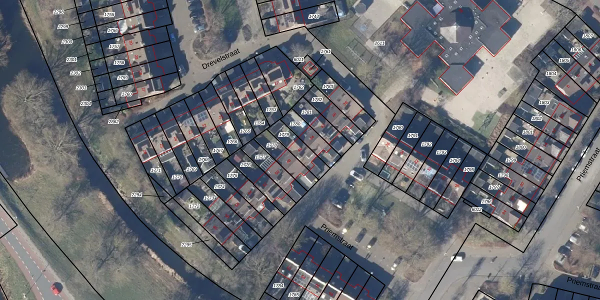 Gebruik de zoekbalk of klik op een perceel voor informatie over de adressen binnen dit perceel.