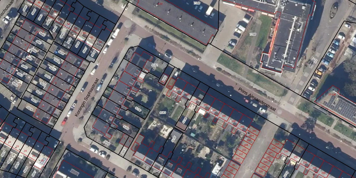Het perceel waarop Prins Alexanderstraat 186 staat heeft een oppervlakte van 8105 m². Dit is een zeer groot perceel. De perceeloppervlakte wordt geregistreerd door het Kadaster. Gedetailleerde informatie over de maten van dit perceel kunt u vinden in het rapport Kadastrale kaart met maatvoering van Prins Alexanderstraat 186.