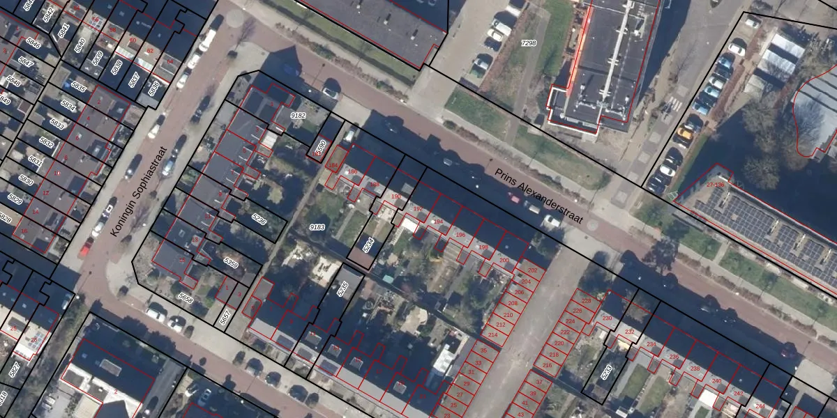 Het perceel waarop Prins Alexanderstraat 192 staat heeft een oppervlakte van 8105 m². Dit is een zeer groot perceel. De perceeloppervlakte wordt geregistreerd door het Kadaster. Gedetailleerde informatie over de maten van dit perceel kunt u vinden in het rapport Kadastrale kaart met maatvoering van Prins Alexanderstraat 192.