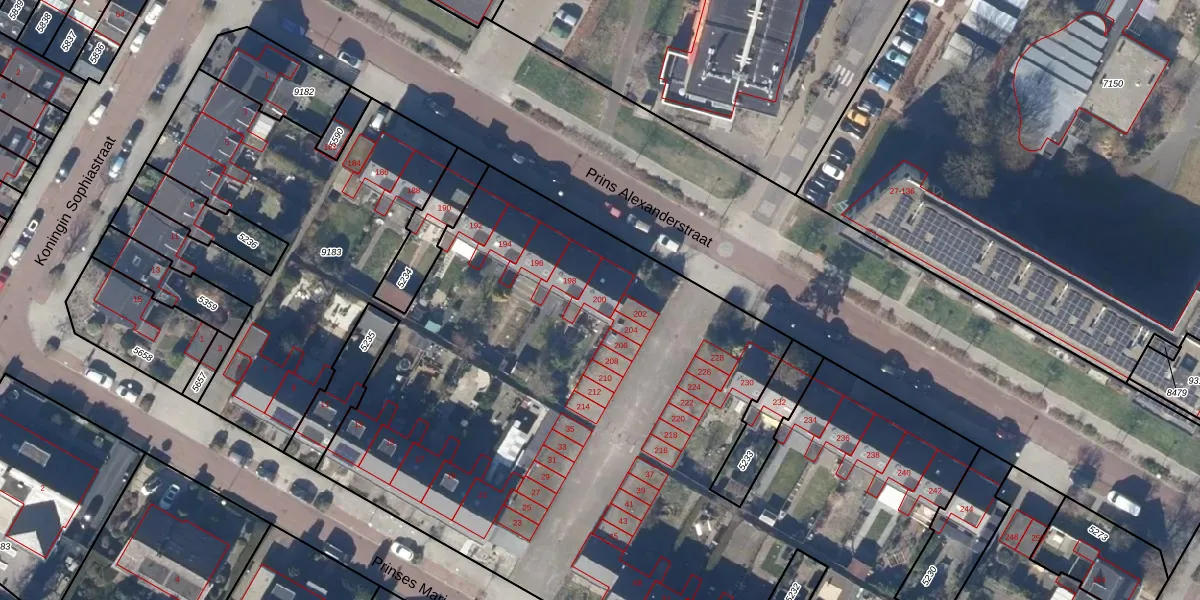 Het perceel waarop Prins Alexanderstraat 200 staat heeft een oppervlakte van 8105 m². Dit is een zeer groot perceel. De perceeloppervlakte wordt geregistreerd door het Kadaster. Gedetailleerde informatie over de maten van dit perceel kunt u vinden in het rapport Kadastrale kaart met maatvoering van Prins Alexanderstraat 200.