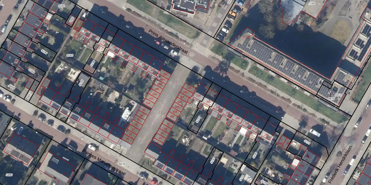 Het perceel waarop Prins Alexanderstraat 226 staat heeft een oppervlakte van 8105 m². Dit is een zeer groot perceel. De perceeloppervlakte wordt geregistreerd door het Kadaster. Gedetailleerde informatie over de maten van dit perceel kunt u vinden in het rapport Kadastrale kaart met maatvoering van Prins Alexanderstraat 226.
