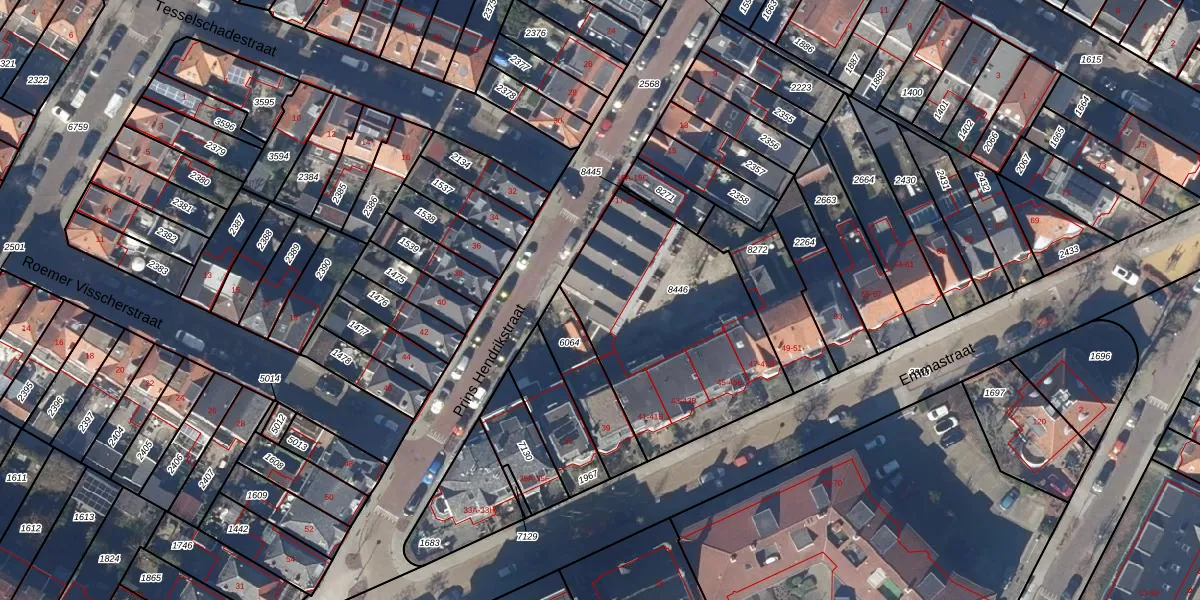 Het perceel waarop Prins Hendrikstraat 35 staat heeft een oppervlakte van 1000 m². Dit is een zeer groot perceel. De perceeloppervlakte wordt geregistreerd door het Kadaster. Gedetailleerde informatie over de maten van dit perceel kunt u vinden in het rapport Kadastrale kaart met maatvoering van Prins Hendrikstraat 35.