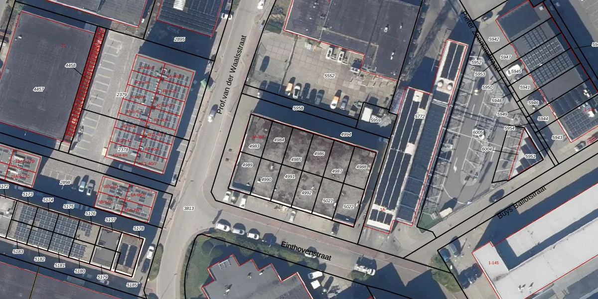 Gebruik de zoekbalk of klik op een perceel voor informatie over de adressen binnen dit perceel.