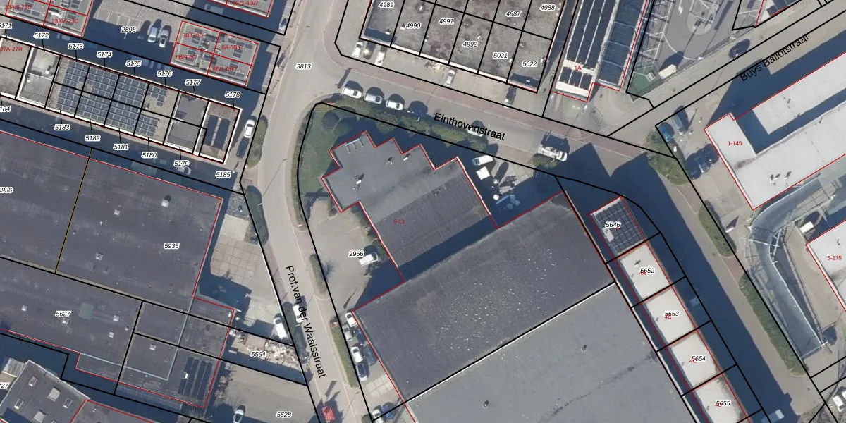 Het perceel waarop Prof.van der Waalsstraat 9 staat heeft een oppervlakte van 3308 m². Dit is een zeer groot perceel. De perceeloppervlakte wordt geregistreerd door het Kadaster. Gedetailleerde informatie over de maten van dit perceel kunt u vinden in het rapport Kadastrale kaart met maatvoering van Prof.van der Waalsstraat 9.