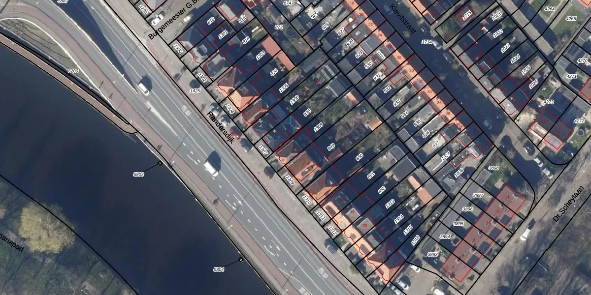 Het perceel waarop Randersdijk 15 staat heeft een oppervlakte van 232 m². Dit is een middelgroot perceel. De perceeloppervlakte wordt geregistreerd door het Kadaster. Gedetailleerde informatie over de maten van dit perceel kunt u vinden in het rapport Kadastrale kaart met maatvoering van Randersdijk 15.