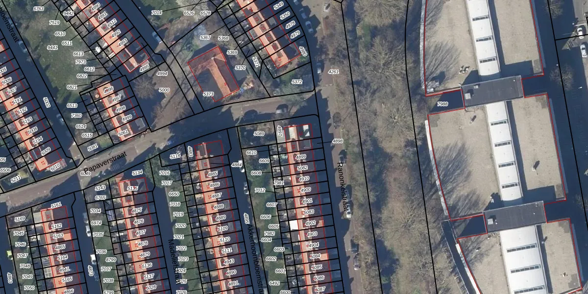 Gebruik de zoekbalk of klik op een perceel voor informatie over de adressen binnen dit perceel.