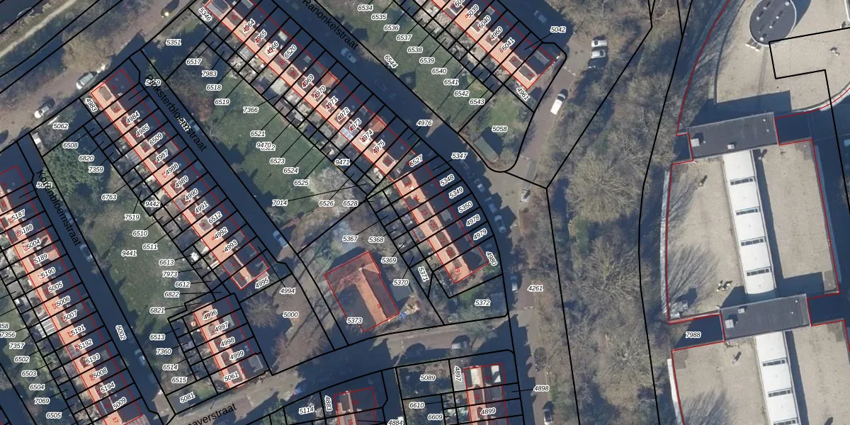 Gebruik de zoekbalk of klik op een perceel voor informatie over de adressen binnen dit perceel.