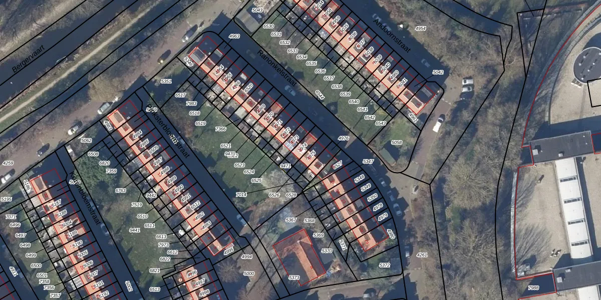 Gebruik de zoekbalk of klik op een perceel voor informatie over de adressen binnen dit perceel.