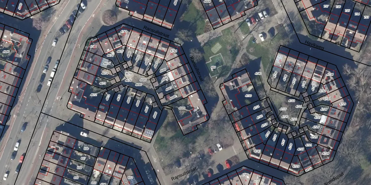 Het perceel waarop Ransuilstraat 21 staat heeft een oppervlakte van 121 m². Dit is een middelgroot perceel. De perceeloppervlakte wordt geregistreerd door het Kadaster. Gedetailleerde informatie over de maten van dit perceel kunt u vinden in het rapport Kadastrale kaart met maatvoering van Ransuilstraat 21.