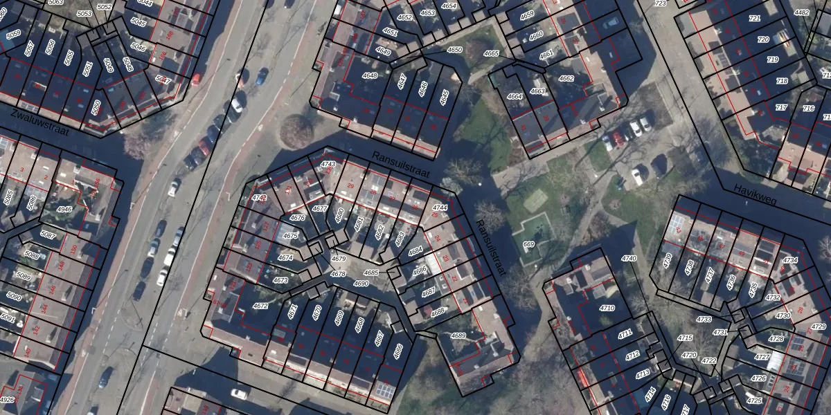 Het perceel waarop Ransuilstraat 26 staat heeft een oppervlakte van 104 m². Dit is een middelgroot perceel. De perceeloppervlakte wordt geregistreerd door het Kadaster. Gedetailleerde informatie over de maten van dit perceel kunt u vinden in het rapport Kadastrale kaart met maatvoering van Ransuilstraat 26.