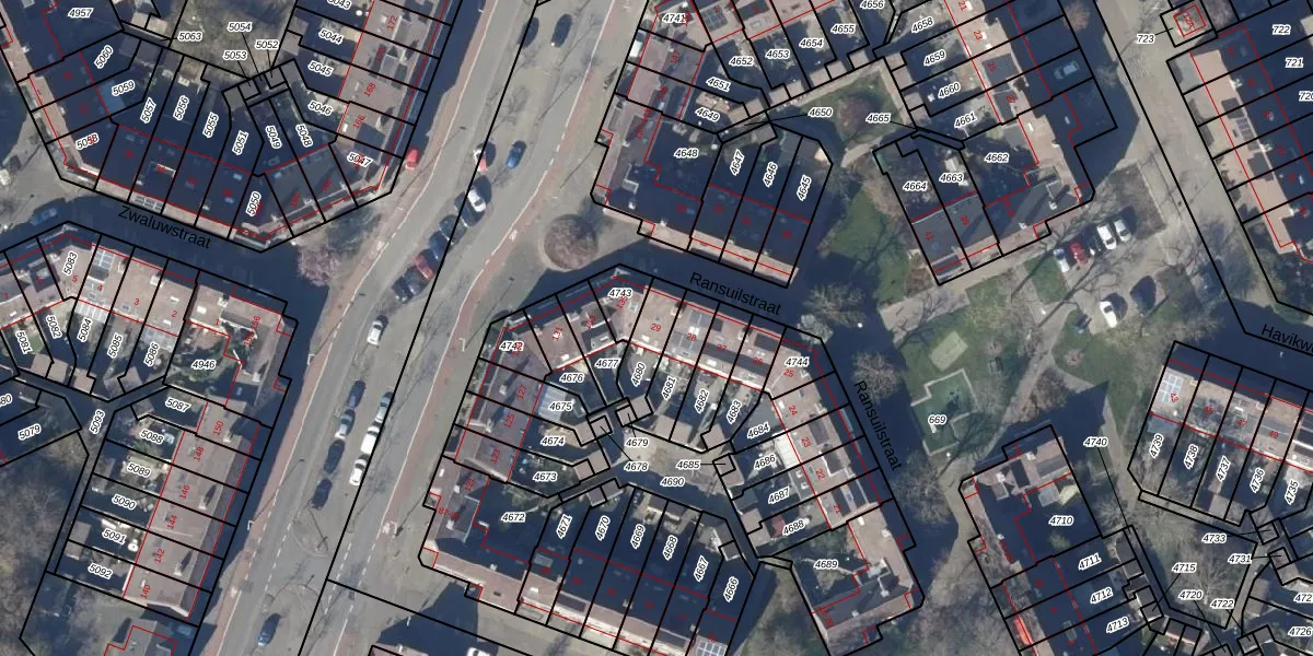 Het perceel waarop Ransuilstraat 29 staat heeft een oppervlakte van 105 m². Dit is een middelgroot perceel. De perceeloppervlakte wordt geregistreerd door het Kadaster. Gedetailleerde informatie over de maten van dit perceel kunt u vinden in het rapport Kadastrale kaart met maatvoering van Ransuilstraat 29.