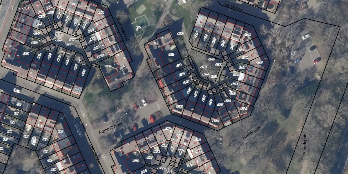 Gebruik de zoekbalk of klik op een perceel voor informatie over de adressen binnen dit perceel.