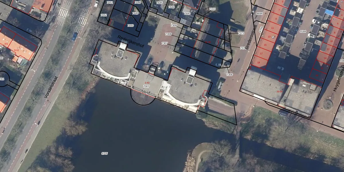 Het perceel waarop Rederijkershof 11 staat heeft een oppervlakte van 1630 m². Dit is een zeer groot perceel. De perceeloppervlakte wordt geregistreerd door het Kadaster. Gedetailleerde informatie over de maten van dit perceel kunt u vinden in het rapport Kadastrale kaart met maatvoering van Rederijkershof 11.