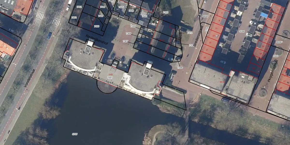 Het perceel waarop Rederijkershof 3 staat heeft een oppervlakte van 1630 m². Dit is een zeer groot perceel. De perceeloppervlakte wordt geregistreerd door het Kadaster. Gedetailleerde informatie over de maten van dit perceel kunt u vinden in het rapport Kadastrale kaart met maatvoering van Rederijkershof 3.
