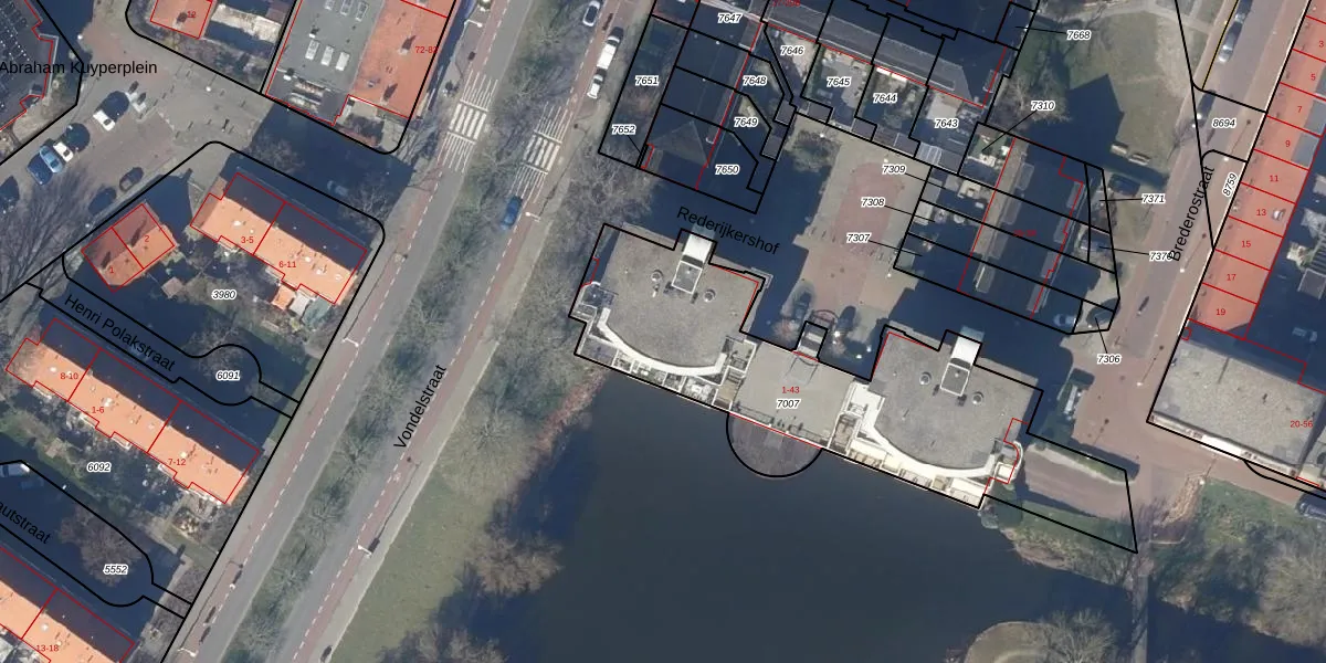 Het perceel waarop Rederijkershof 37 staat heeft een oppervlakte van 1630 m². Dit is een zeer groot perceel. De perceeloppervlakte wordt geregistreerd door het Kadaster. Gedetailleerde informatie over de maten van dit perceel kunt u vinden in het rapport Kadastrale kaart met maatvoering van Rederijkershof 37.
