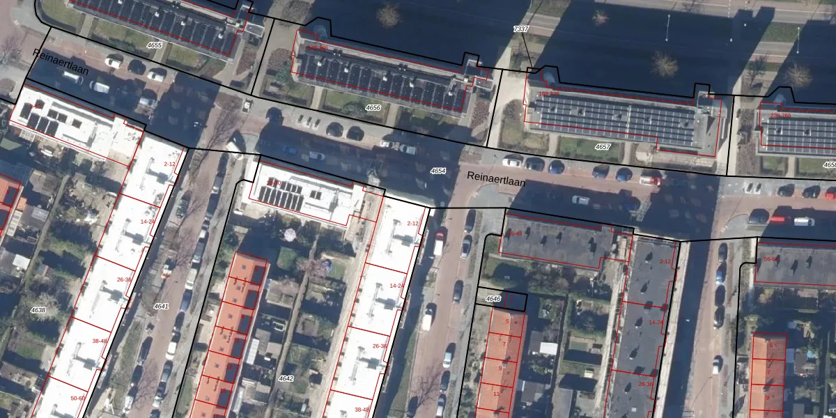 Het perceel waarop Reinaertlaan 36 staat heeft een oppervlakte van 4157 m². Dit is een zeer groot perceel. De perceeloppervlakte wordt geregistreerd door het Kadaster. Gedetailleerde informatie over de maten van dit perceel kunt u vinden in het rapport Kadastrale kaart met maatvoering van Reinaertlaan 36.