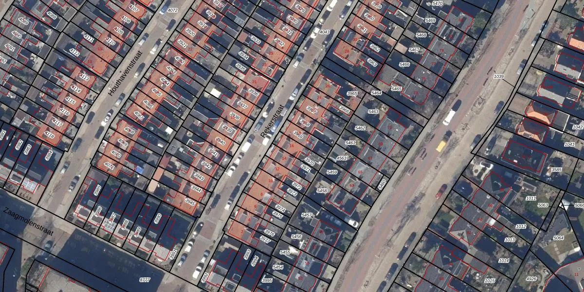 Het perceel waarop Rekerstraat 16 staat heeft een oppervlakte van 89 m². Dit is een klein perceel. De perceeloppervlakte wordt geregistreerd door het Kadaster. Gedetailleerde informatie over de maten van dit perceel kunt u vinden in het rapport Kadastrale kaart met maatvoering van Rekerstraat 16.