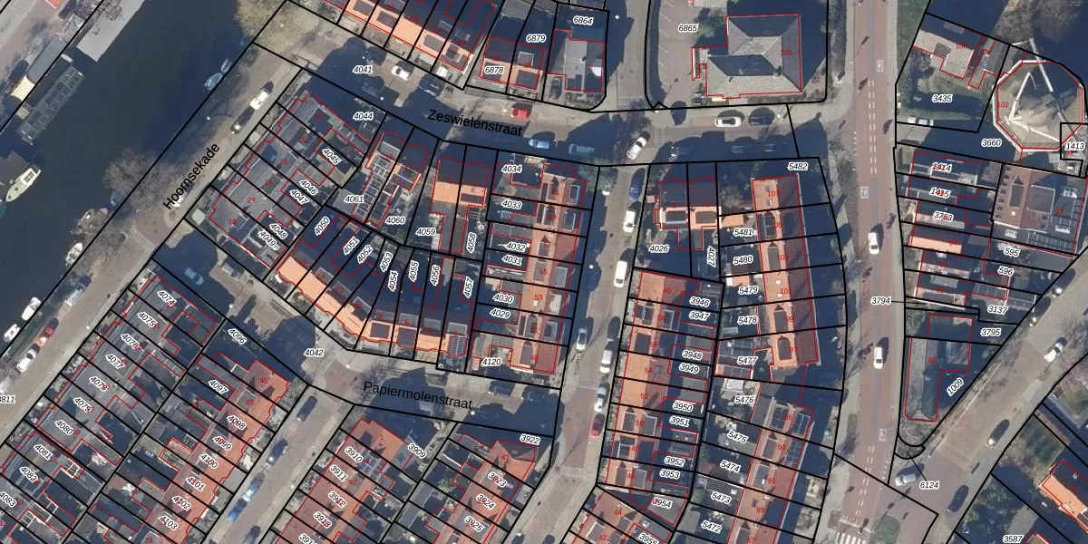 Gebruik de zoekbalk of klik op een perceel voor informatie over de adressen binnen dit perceel.