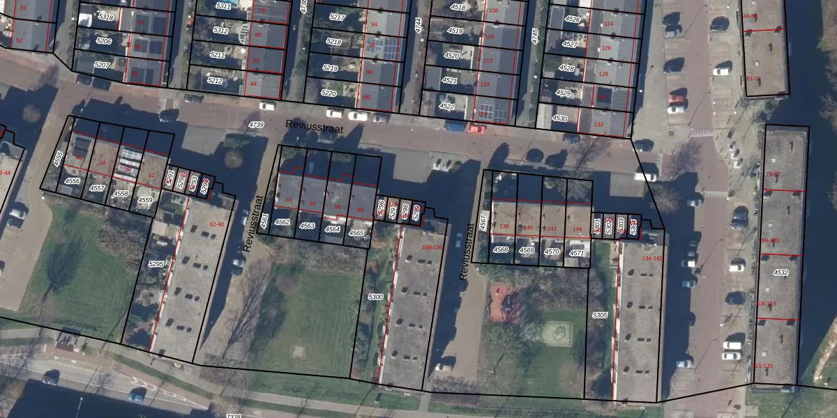 Het perceel waarop Reviusstraat 106 staat heeft een oppervlakte van 18 m². Dit is een klein perceel. De perceeloppervlakte wordt geregistreerd door het Kadaster. Gedetailleerde informatie over de maten van dit perceel kunt u vinden in het rapport Kadastrale kaart met maatvoering van Reviusstraat 106.